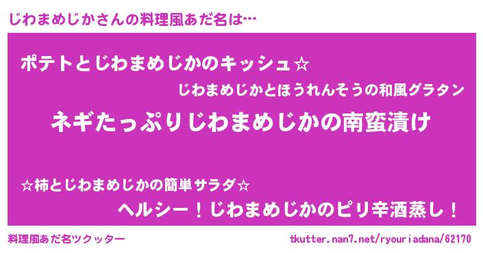 | ポケモン風あだ名 | 『ジワチュウ』『ヒジワマメジカ』 |