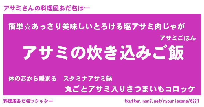 | ヘコむあだ名 | 『アサミ(笑)』『レバニラ』 |