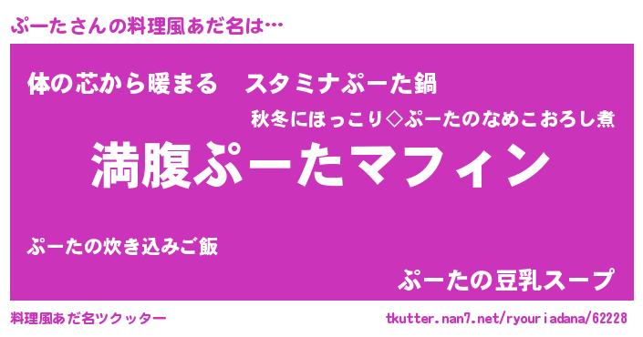| 意味不明あだ名 | 『永久保存ぷーた』『ぷーたフォーエバー』 |
