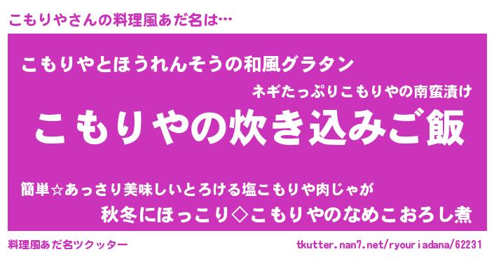 | 胡散臭い通販商品みたいなあだ名 | 『億万長者になれるブレスレット…その名も「こもりや」』 |