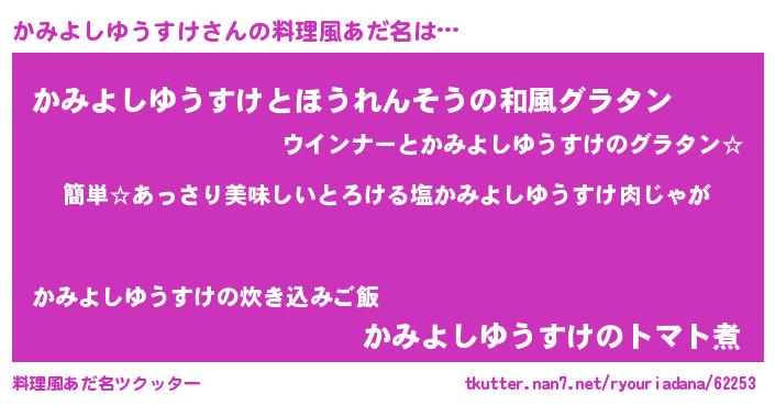 | ヘコむあだ名 | 『かみよしゆうすけ(笑)』『つくし』 |