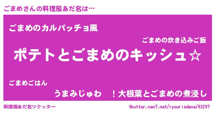 | 女子向けラノベタイトル風あだ名 | 『ごまめの卵を拾いまして』 |