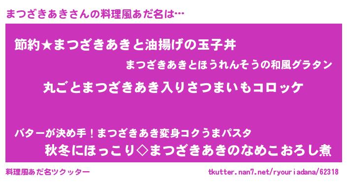 | 男性向けラノベタイトル風あだ名 | 『魔弾の王とまつざきあき』 |