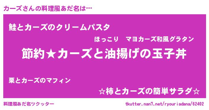 | 女子向けラノベタイトル風あだ名 | 『カーズ姫と円卓の騎士』 |