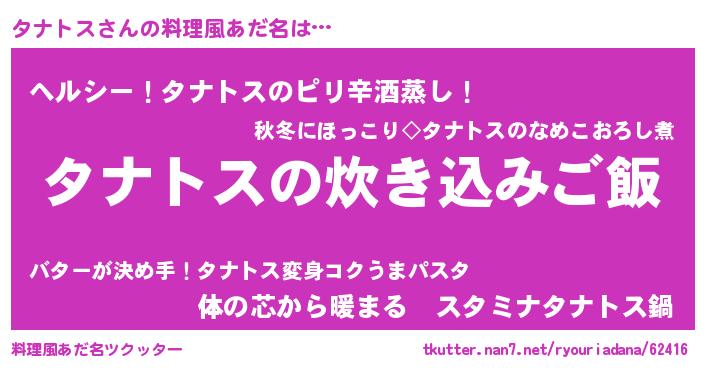 | 意味不明あだ名 | 『自称タナトス』『タナトスフォーエバー』 |