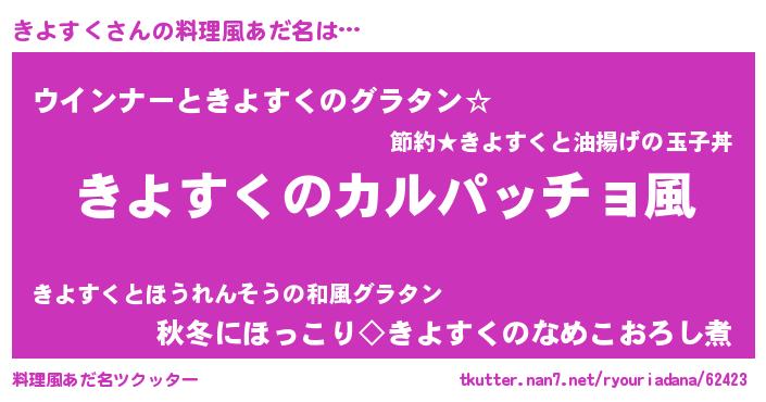 | ヒーロー風カッコイイあだ名 | 『仮面キヨダー』『ウルトラきよすくマン』 |