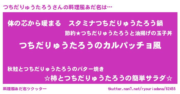 | 意味不明あだ名 | 『住所不定無職つちだりゅうたろう(65歳)』 |