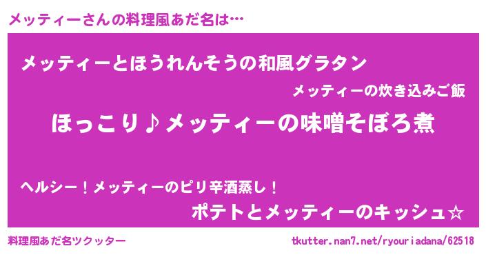 | 男性向けラノベタイトル風あだ名 | 『メッティーの憂鬱』 |
