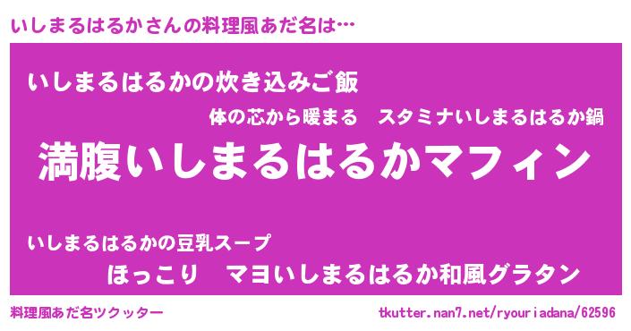 | 胡散臭い通販商品みたいなあだ名 | 『絶対に幸福をもたらす健康食品…その名も「いしまるはるか」』 |