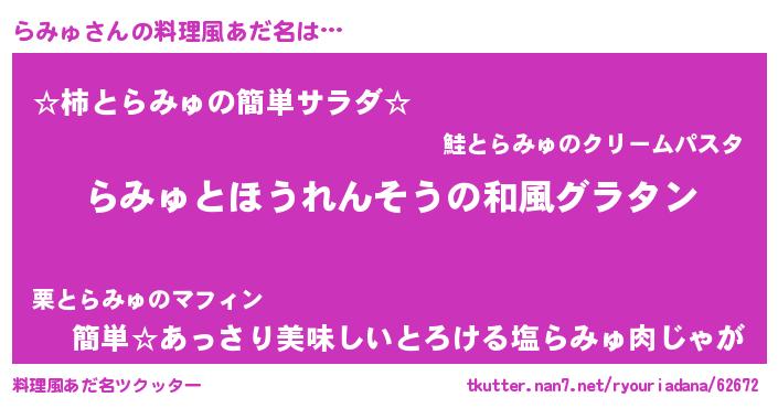 | ヘコむあだ名 | 『らみゅ(震え声)』『なまこ酢』 |