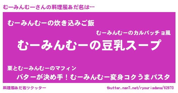 | 女子向けラノベタイトル風あだ名 | 『むーみんむーは平凡を望む』 |