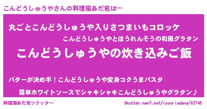 | 意味不明あだ名 | 『住所不定無職こんどうしゅうや(91歳)』 |