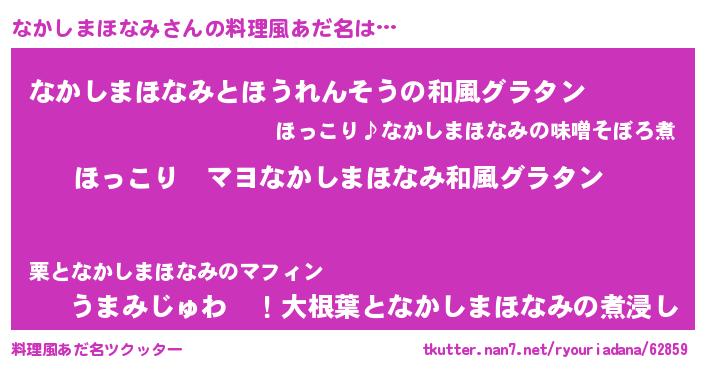 | 意味不明あだ名 | 『住所不定無職なかしまほなみ(1歳)』 |