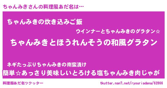 | 胡散臭い通販商品みたいなあだ名 | 『前代未聞の健康食品…その名も「ちゃんみき」』 |