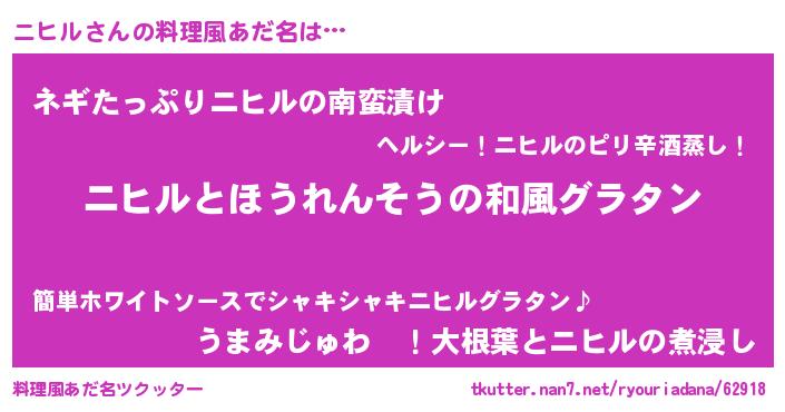 | ポケモン風あだ名 | 『ニヒキング』『ニヒチュウ』 |