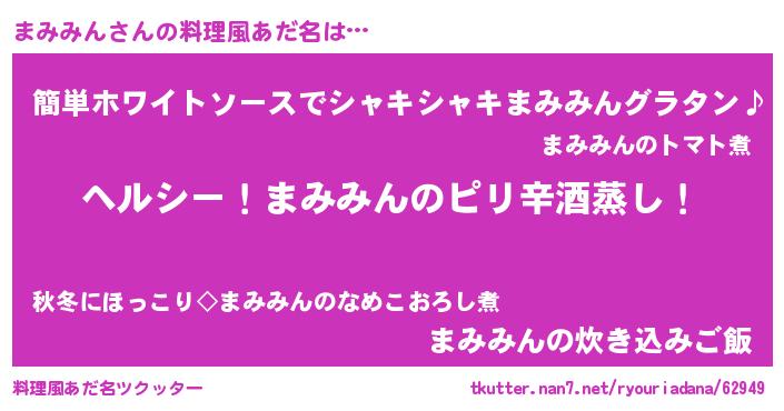 | ヘコむあだ名 | 『まみを』『まみみん(笑)』『つくし』 |