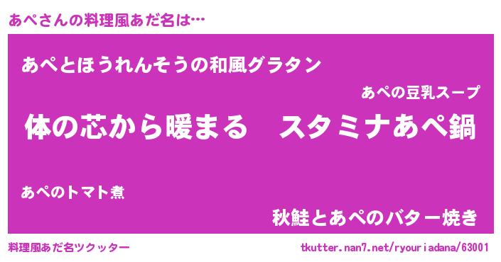 | 男性向けラノベタイトル風あだ名 | 『やはりあぺの青春ラブコメはまちがっている 』 |