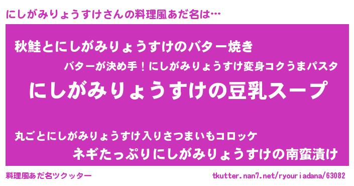 | ポケモン風あだ名 | 『ヒニシガミリョウスケ』『ゼニニシ』 |