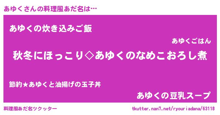 | ピコ太郎風あだ名 | 『アユ史郎』『アコ次郎』『アア太郎』 |