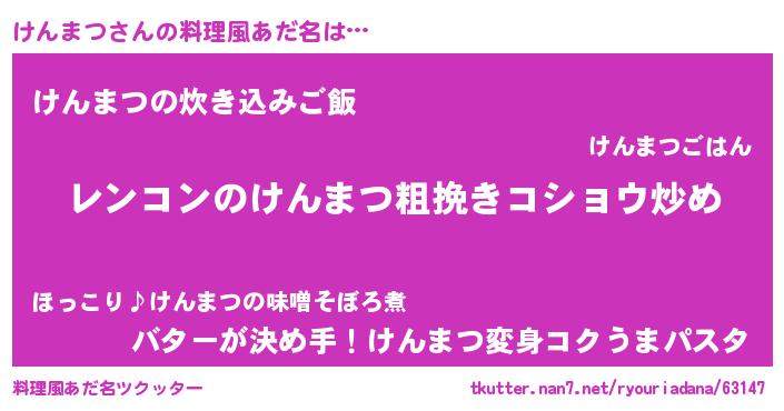 | 意味不明あだ名 | 『自称けんまつ』『たけのこ科けんまつ属』 |