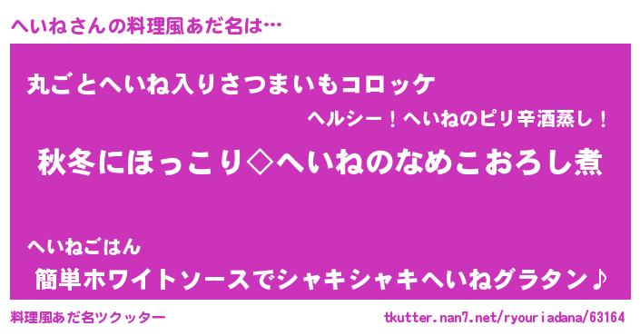 | 意味不明あだ名 | 『住所不定無職へいね(50歳)』『自称へいね』 |