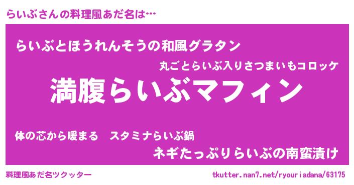 | ヘコむあだ名 | 『らいぶ(爆)』『らいにー』 |