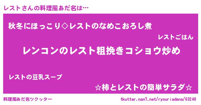 | 男性向けラノベタイトル風あだ名 | 『魔法科高校のレスト』『緋弾のレスト』 |