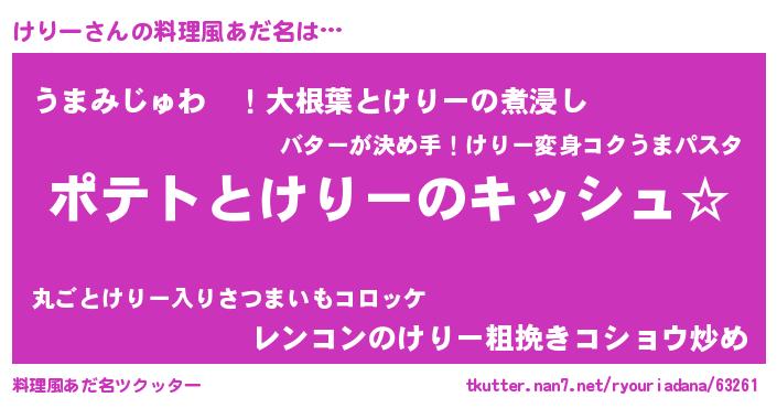 | ヘコむあだ名 | 『けりお』『つくし』『けりー(爆)』 |