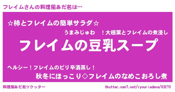 | 女子向けラノベタイトル風あだ名 | 『フレイムは平凡を望む』『闇のフレイム』 |
