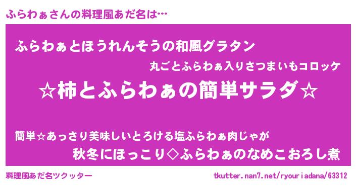 | ヘコむあだ名 | 『ふらわぁ(笑)』『ふらっちょ』 |
