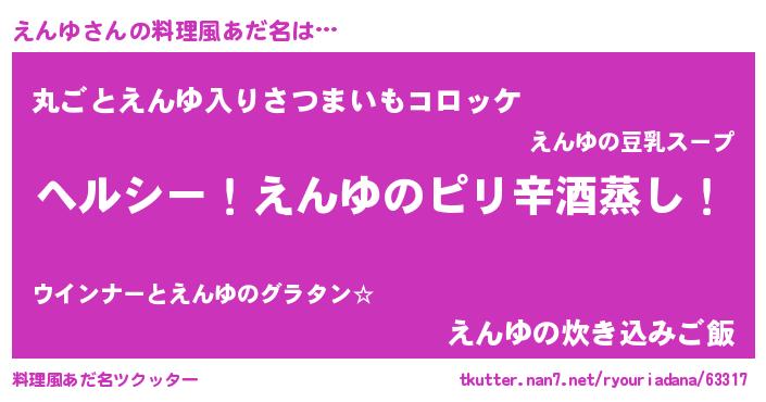 | ヘコむあだ名 | 『えんを』『なまこ酢』『えんふぇ~』 |