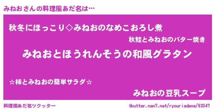 | 女子向けラノベタイトル風あだ名 | 『みねおの玉の輿計画!』 |