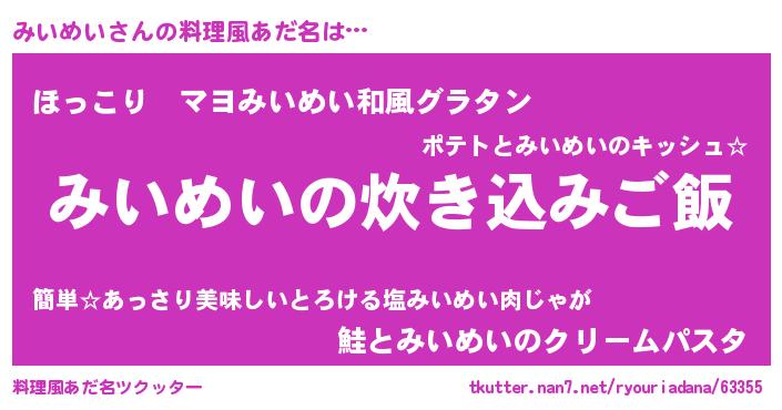 | ヒーロー風カッコイイあだ名 | 『仮面ミイダー』『慈愛の使者みいめい』 |