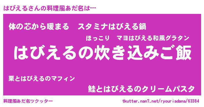 | ヘコむあだ名 | 『なまこ酢』『はびえる(笑)』 |