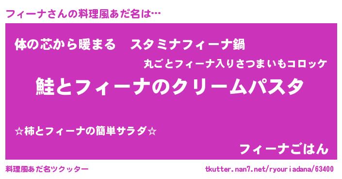 | 男性向けラノベタイトル風あだ名 | 『ノーゲーム・ノーフィーナ』 |