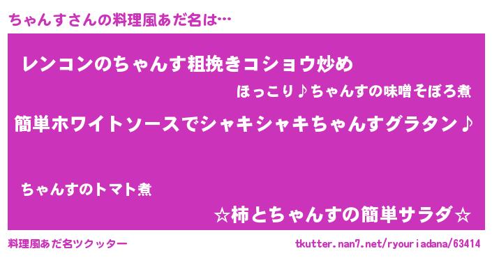 | 男性向けラノベタイトル風あだ名 | 『ちゃんすの嫁は女の子じゃないと思った?』 |