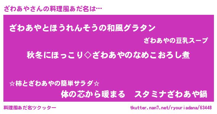 | 欧米人風あだ名 | 『アンジェラ・ざわあや』 |