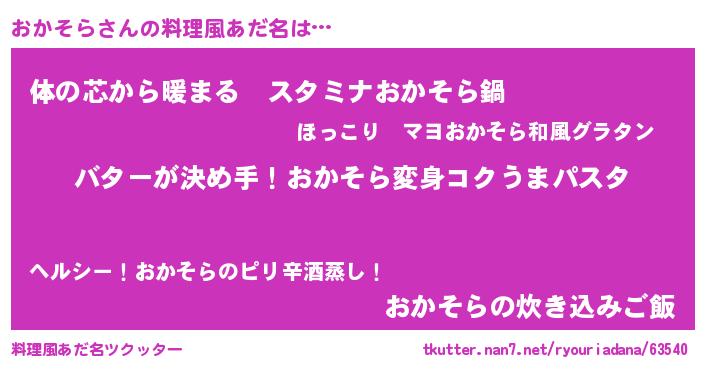 | 女子向けラノベタイトル風あだ名 | 『おかそら恋絵巻』『闇のおかそら』 |