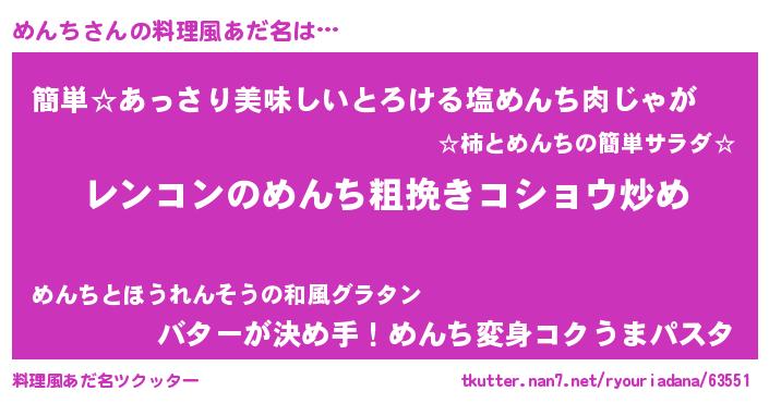 | 意味不明あだ名 | 『自称めんち』『永久保存めんち』 |