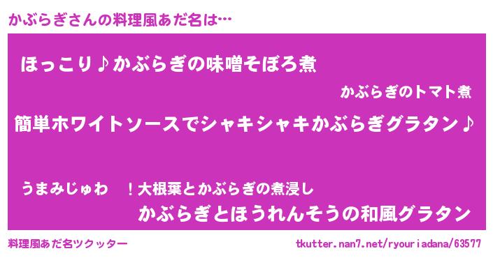 | 男性向けラノベタイトル風あだ名 | 『かぶらぎの嫁は女の子じゃないと思った?』 |