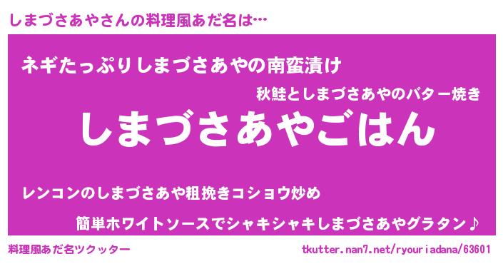 | 意味不明あだ名 | 『めかぶ科しまづさあや属』 |
