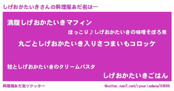 | 意味不明あだ名 | 『住所不定無職しげおかたいき(3歳)』 |