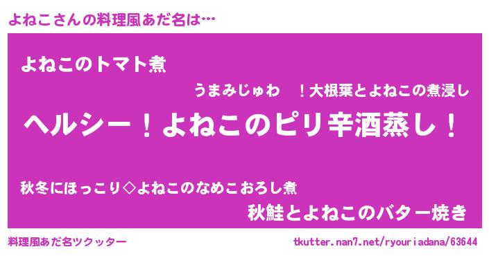 | 女子向けラノベタイトル風あだ名 | 『闇のよねこ』『よねこ夫妻のなれそめ』 |