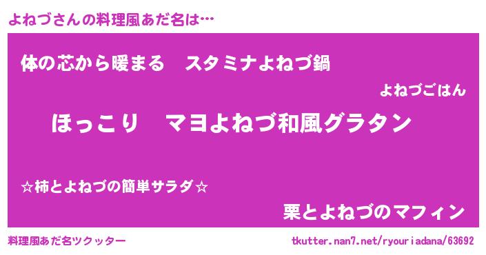 | 男性向けラノベタイトル風あだ名 | 『この素晴らしい世界によねづを!』 |