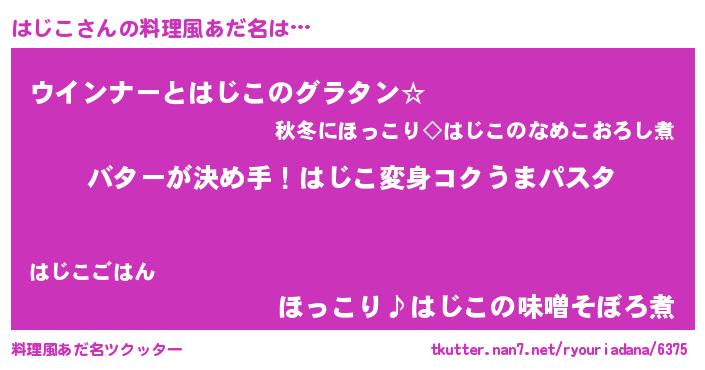 | ヘコむあだ名 | 『なまこ酢』『はじもー』『はじ太郎』 |