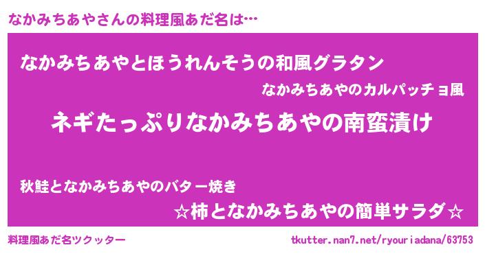 | 恥ずかしいあだ名 | 『プリティーなかみちあや』『なかちん』 |