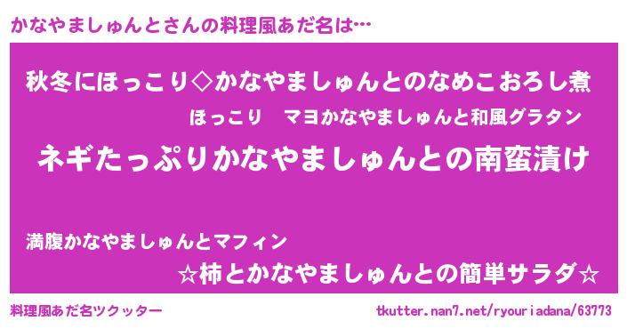 | ファンタジー風あだ名 | 『カナフェル』『カークカナラー』 |