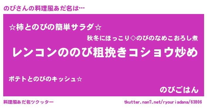 | 意味不明あだ名 | 『自称のび』『たけのこ科のび属』 |