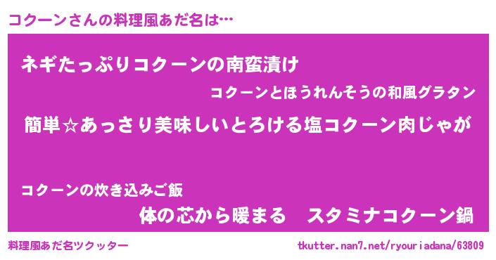 | ヘコむあだ名 | 『コクーン(遠い目)』『コクふぇ~』 |