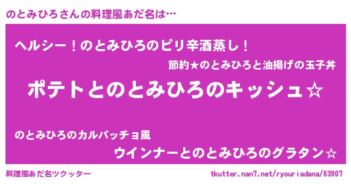 | 男性向けラノベタイトル風あだ名 | 『ダンジョンにのとみひろを求めるのは間違っているだろうか』 |